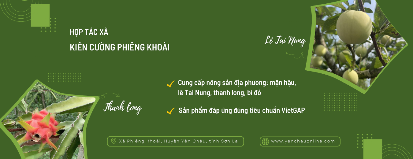 Hợp tác xã Kiên Cường Phiêng Khoài được thành lập với mục tiêu hướng tới sản phẩm bền vững có nguồn gốc tự nhiên, an toàn và nâng cao sức khỏe cho người sử dụng. Chúng tôi đề cao tính trách nhiệm trong sản xuất và chia sẻ lợi ích với cộng đồng. Lĩnh vực ngành nghề kinh doanh chính là trồng trọt và chế biến một số loại nông sản địa phương như mận, lê, thanh long, bí đỏ…